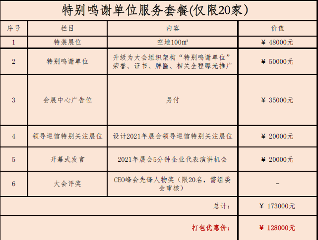 ◎展会赞助费:2万元,从签定合同并支付费用起,所有中英文宣传资料和广告打上赞助单位的字样;