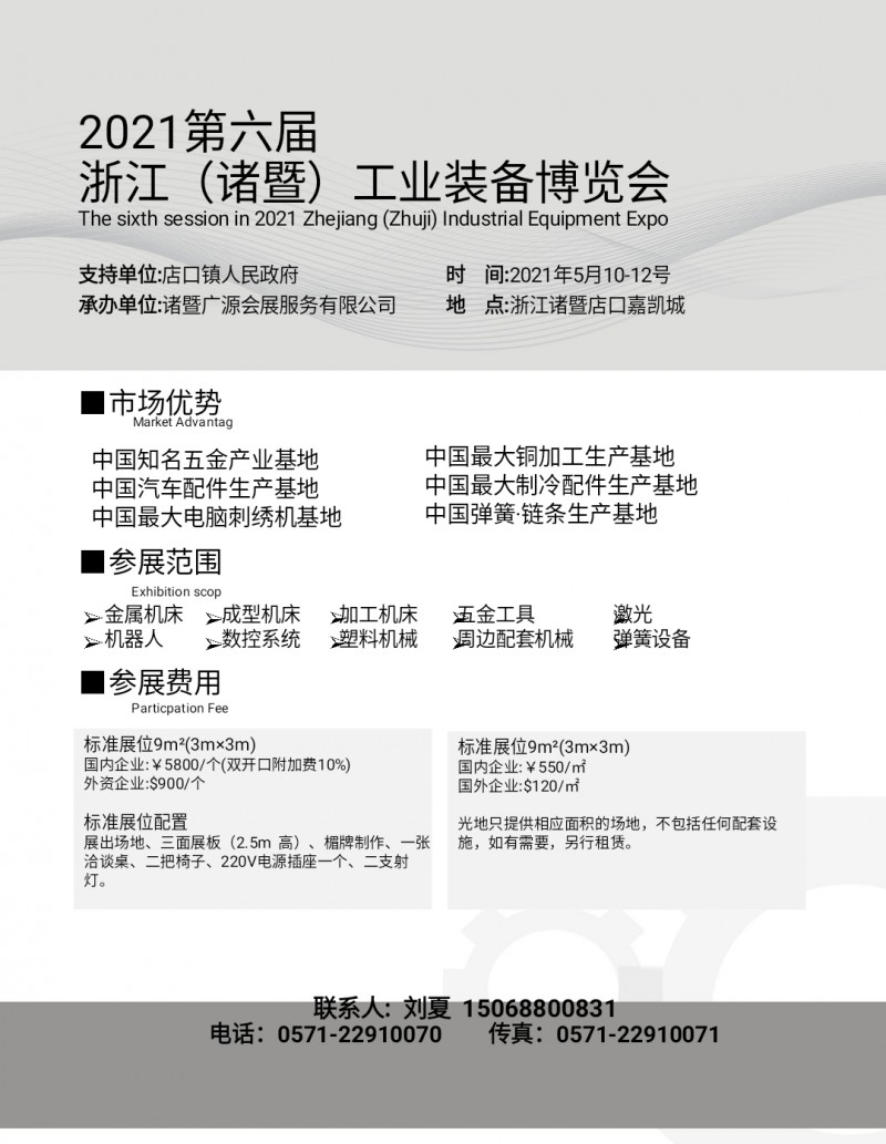 The sixth session in 2021 Zhejiang(Zhu) Industrial Equipment Expo