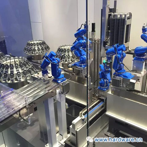 图:中国机械工业联合会执行副会长中国机器人产业联盟执行理事长兼秘书长宋晓刚先生、中国机械工业联合会展览工作部副主任中国机器人产业联盟副秘书长陈家良先生、上海中机联展览有限公司副总经理陈晓菁女士在安川电机工作人员陪同下参观安川电机总部-机器人生产机器人工厂