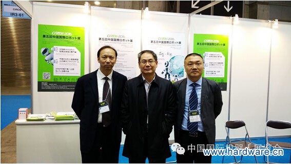 图左起:中国机械工业联合会执行副会长中国机器人产业联盟执行理事长兼秘书长宋晓刚先生、中国机器人产业联盟理事长曲道奎博士、中国机械工业联合会展览工作部副主任中国机器人产业联盟副秘书长陈家良先生在日本国际机器人展现场的CIROS中国国际机器人展览会展位合影