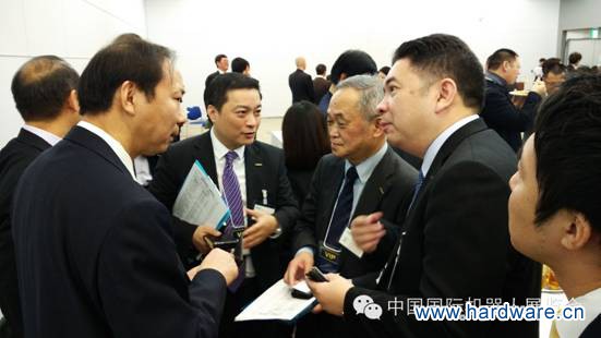 2015年12月2日上午CIROS中国国际机器人展览会组委会组织参访团于日本国际机器人展现场举办了中日机器人行业交流冷餐会,时代集团、沈阳新松、南京埃斯顿、长沙长泰、济南时代、上海沃迪等60余名公司老总以及日本中小企业社长等均有出席。本次中日机器人行业交流冷餐会主要以中国企业与日本本土企业的产需对接为主,旨在共同提高两国机器人产业的发展。