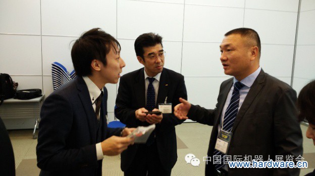 2015年12月2日上午CIROS中国国际机器人展览会组委会在2015日本国际机器人展现场举办了”CIROS中国国际机器人展览会参访团中日企业交流会“中国机械工业联合会执行副会长中国机器人产业联盟执行理事长兼秘书长宋晓刚先生、中国机械工业联合会展览工作部副主任中国机器人产业联盟副秘书长陈家良先生等领导以及沈阳新松、南京埃斯顿、长沙长泰、济南时代、上海沃迪、哈工大机器人、深圳中科、杭州高博等60多家企业的董事长及总经理和多名日本本土中小企业社长均有出席。
