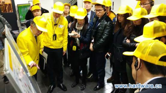 图:FANUC社长稻叶善治带领CIROS中国国际机器人展览会参访团参观发那科工厂内部