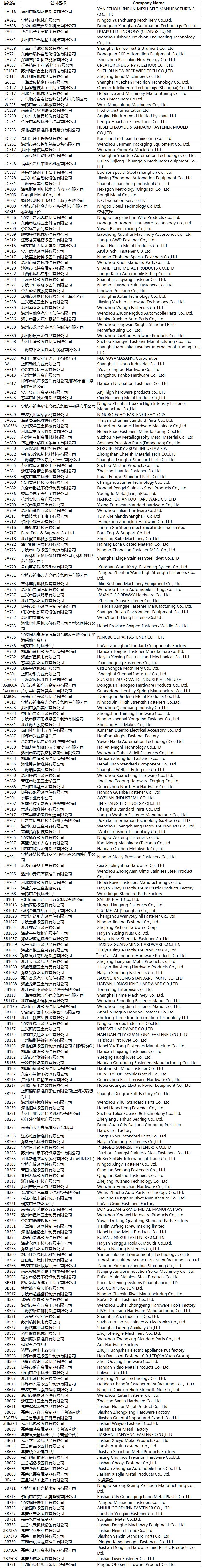 展品范围:紧固件配套设备、紧固件生产设备、紧固件材料、紧固件用模具和耗品、检测仪器、包装设备、其它相关生产技术和设备等。