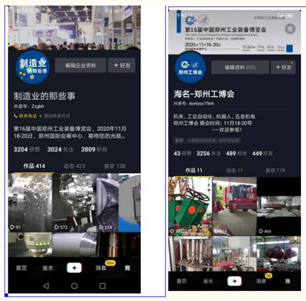 抖音平台,作为目前最火的短视频渠道,郑州工博会深入短视频领域,打造了“制造业那些事”行业大号,总粉丝数3754人,累计视频浏览量近60万,以及数个展会类专属IP账号,目前已吸引了机床、自动化、汽车、机加、医疗器械、3C电子等行业专业人士关注。同时展会也会不定期举行各类直播活动,为企业推广打开短视频新方式。
