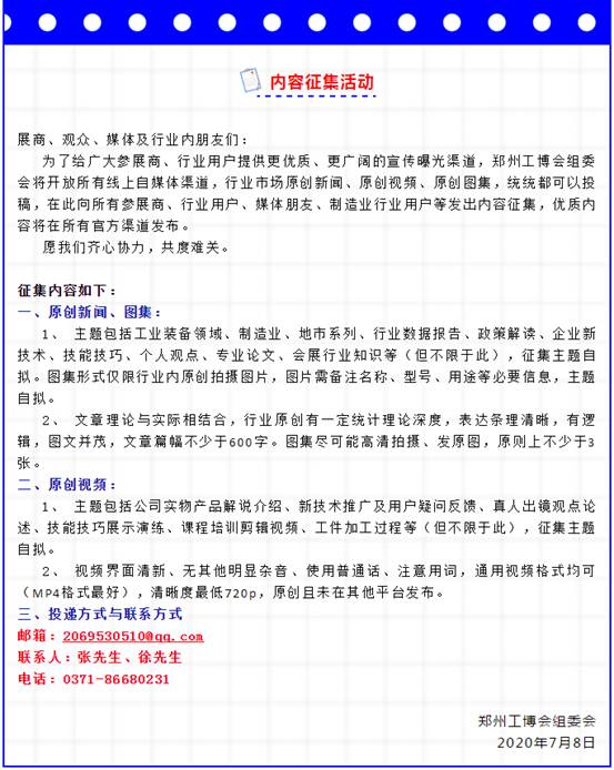 郑州工博会、郑州工业自动化展、郑州机床展微信公众号,作为展会官方发声平台,最全的展会资讯、市场资讯,关注一波不走丢。