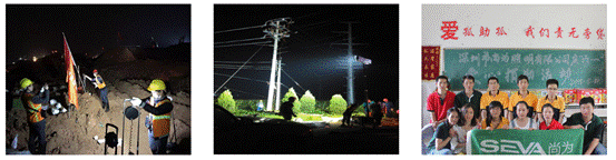 集团通过为社会提供智慧节能产品,每年至少为国家节约电能10亿KWH,减少约100万吨二氧化碳排放,未来八年,提供近万个就业岗位。结合自身优势于各省区成立专业照明救援先锋队,连续十年为社会各种自然灾害和突发事故提供照明支援。为孤儿院、敬老院、山区儿童送去力所能及的温暖,践行着尚为人的社会担当。