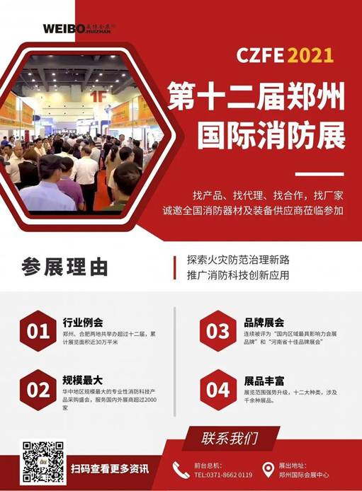 您好!CZFE2021第12届郑州国际消防展将于6月8-10日在郑州国际会展中心盛大开幕。首先非常感谢诸位对CZFE郑州消防展的支持与厚爱!我们将以一颗赤诚、感恩之心,竭诚为您的参展工作做好精致化服务。