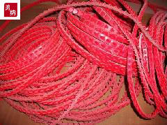 活络带是将数个相同的硫化多层挂胶帆布用铆钉或螺栓连接而成,各片易于拆卸重组的活络带。其楔角为40°,根据顶宽和带高不同有A,B,C,D,E五种型号。Z大特点是长度尺寸可以任意加长或截短。若活络带局部损坏,可拆除损坏部分,进行更换而继续使用。 活络带仅适用于轻型、低速的动力传递。 一、猪红色无钉扣活络带 3L M A B C D E 二、橘红色带钉扣活络带 M A B C D 三、浅蓝色带钉扣活络带 SPZ SPA SPB SPC