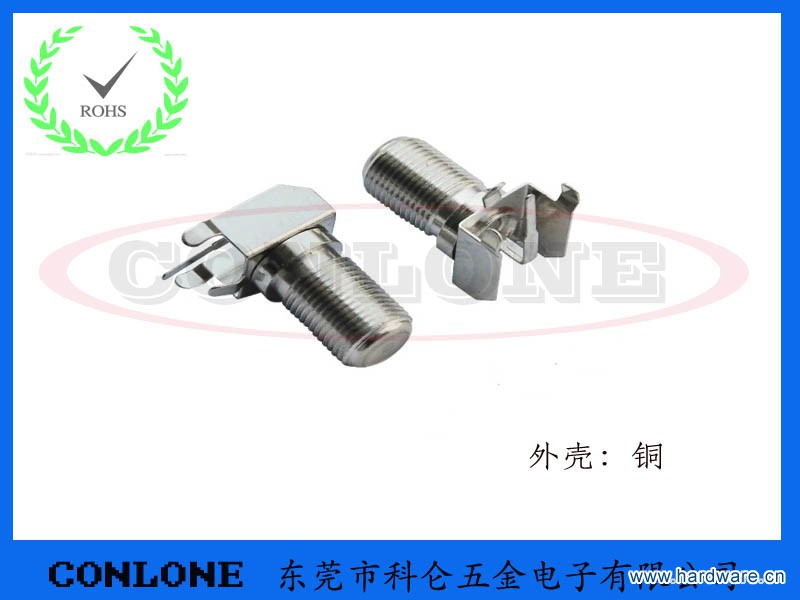 科仑电子生产的F视频连接器,视频插座。外壳材料分为锌合金和铜材。中心针一律为黄铜镀金。或者磷青铜,铍铜镀金。保证信号的传输。绝缘体POM,PBT,PTFE等环保材料。我司专业选材,用心制造,只为保证F视频连接器的品质。我们不做低端。只做您Z需要的。