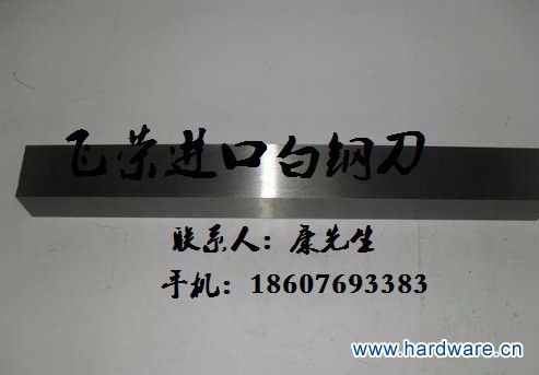 含钨的钢材 ,比如高速钢和某些热作模具钢,钢材中含钨对钢材硬度和耐热性能有很显著的提高,但是韧性会急剧下降。 飞荣金属 硬质合金中主要成分为碳化钨,所以也被称作钨钢 钨钢属于硬质合金,又称之为钨钛合金。硬度可以达到HRB89至95,正因如此,钨钢的产品(常见的有钨钢手表),具有不易被磨损的特性。 常用于车床刀具、冲击钻钻头、玻璃刀刀头、瓷砖割刀之上,坚硬不怕退火,但质脆。属于稀有金属之列。