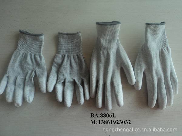 【百安品牌】供应碳丝PU涂指手套,专业防静电手套