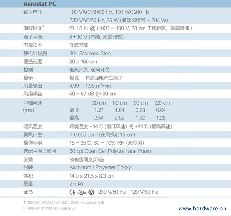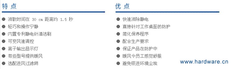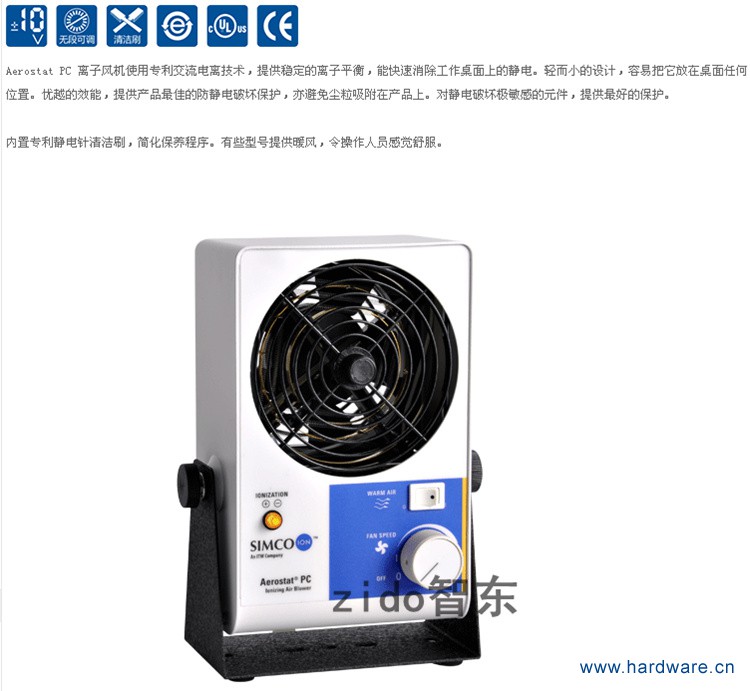 SIMCO离子风机PC,高性能的除电电极,可快速完整地除去静电,防止液晶,电子元件的静电破坏,退化。产品轻量、设计紧凑可放于桌面任何地方。