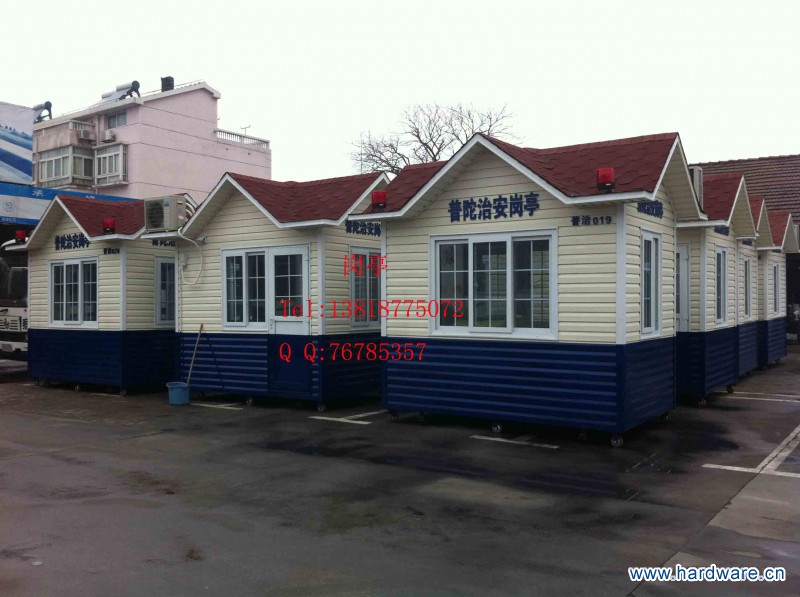 (岗亭)常用规格:1.2*1.5.2.4M 1.5*1.5*2.4M 1.5*1.8*2.4,2.0*2.0*2.4 实际大小,可按客户要求定做。