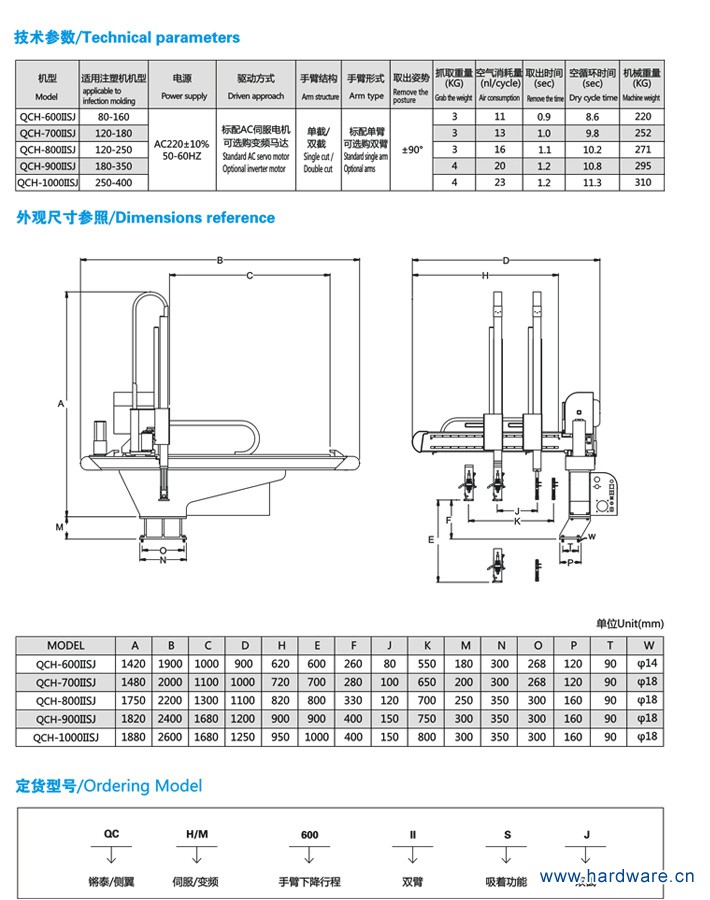 6.双截倍速结构,手臂的下降速度更快,取出时间更短,单臂取出结构适用于两板模,双臂取出结构适用于两板模及三板模.