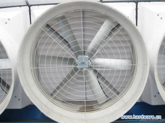 降温风机外型尺寸:1460×1460×950 ;扇叶直径:1360㎜ 扇叶转数:460r/m 空气流量:46000m3/h 噪音:65dB 电源:380V50HZ 功率:0.75KW 重量:75Kg. 风机扇叶是铝合金冲压, 外壳为FRP玻璃纤维.