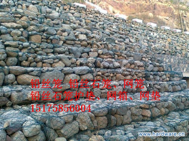 铅丝石笼材质从好到差依次是:镀10%锌铝合金(高尔凡)丝、5%锌铝合金丝、热镀锌丝、冷镀锌丝。还有就是在以上材质的外层包上一层塑料pvc或是pe,塑料颜色多种,可随你定。如果您想使工程产品几十年不生锈,那么只能使用高尔凡的,但是价格肯定相对于其他的材质要高,材质决定价格,价格也决定材质。低价格考虑的同时,也要保证质量。