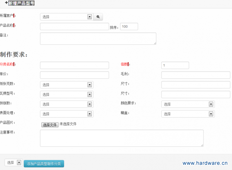 产品型号对应的就是制作 要求内容。内容是在产品设置里面设置的。
