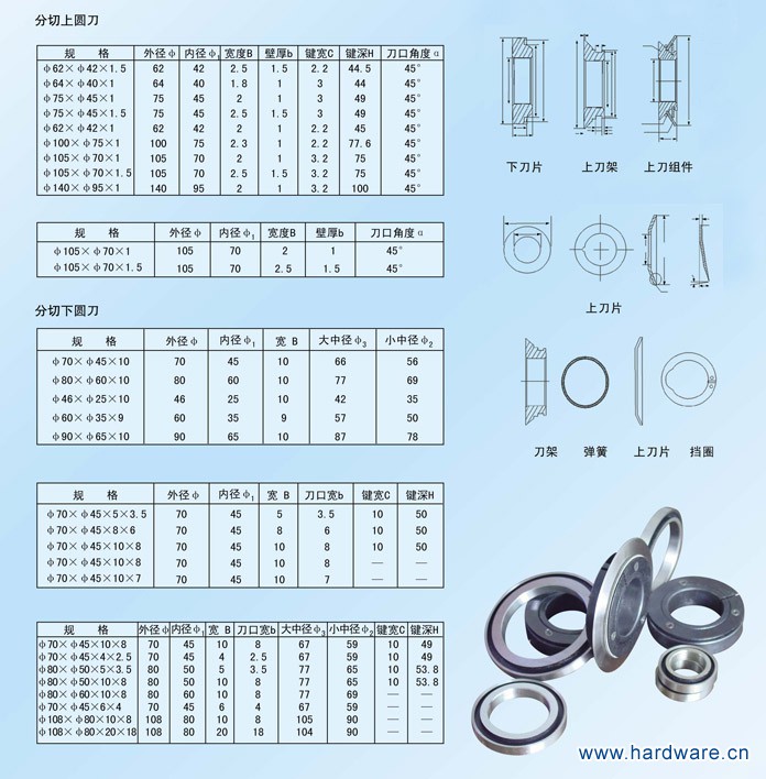 分切圆刀片主要用于离型膜、光学膜、纸张、薄膜、PC、PS等材料及各种纸卷、无纺布,胶卷,纸张,薄膜,金,银箔,铜箔,铝箔,磁带等物品的分切,要求刀片切断阻力小,耐磨性大,出于对商品精度的要求刃具有时须达到微米级精度。 选用优质的9CrSi,Cr12MoV(SKD-11),W6Mo5Cr4V2(高速钢)钢材为原料,运用先进的加工设备和先进的热处理设备,产品使用于金属分条、分切保护膜、胶带分切、薄膜分切、医用材料分切、纸张分切、化纤分切、纺织布分切、无纺布分切、捆条布分切、电子材料分切、铝箔分切、分纸刀等,各种材料的分切所用特殊规格,可来图来函定制。