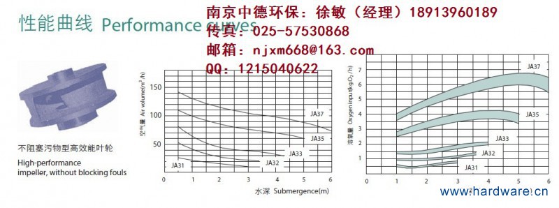 5.该曝气机由潜水电泵与喷射泵组成,从而使水体搅动与充氧同时进行,既可获得较高的氧气吸收率,又具有叶轮无堵塞优点。