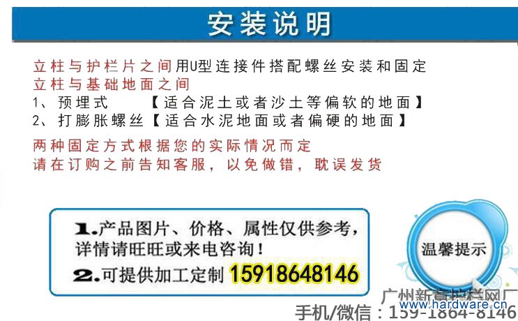 (4)、方立柱:边长130mm , 壁厚6mm , 长度2540mm 。