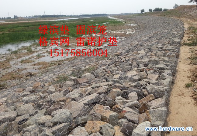 绿滨垫(雷诺护垫、格宾护垫)是厚度在0.15-0.5m(含0.5m)的网箱结构。主要用作河道、岸坡、路基边坡护坡结构。既可防止河岸遭水流、风浪侵袭而破坏,又实现了水体与坡下土体间的自然对流交换功能,达到生态平衡。坡上植绿可增添景观、绿化效果。