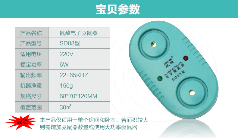 1、小功率驱鼠器只适合卧室房间使用,房间多需要增加驱鼠器数量或使用大功率驱鼠器;