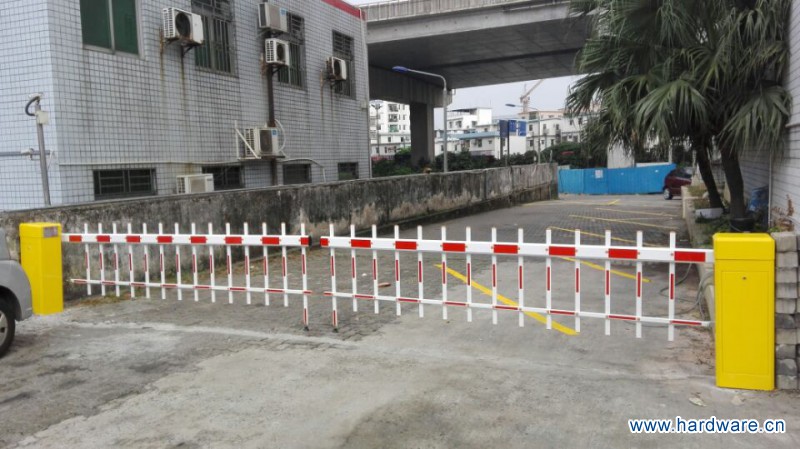 2、挡杆(闸杆):栏栅挡杆采用优质铝型材,配有反光膜红白相间,固定在主机上配合主机工作。