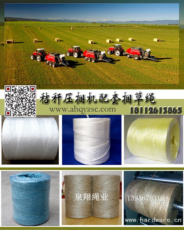 的停机现象和零件磨损加快。在这种情况下,我公司研发生产出针对各种型号打捆机专用打捆绳,大大减少降低了用户因购绳不当而导致打捆机无法正常工作和一系列对打捆机不利的因素,从而有效的解决了广大用户在打捆过程中造成的断绳,散捆,不打结,磨损配件等问题。