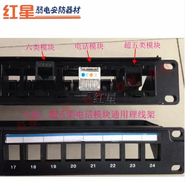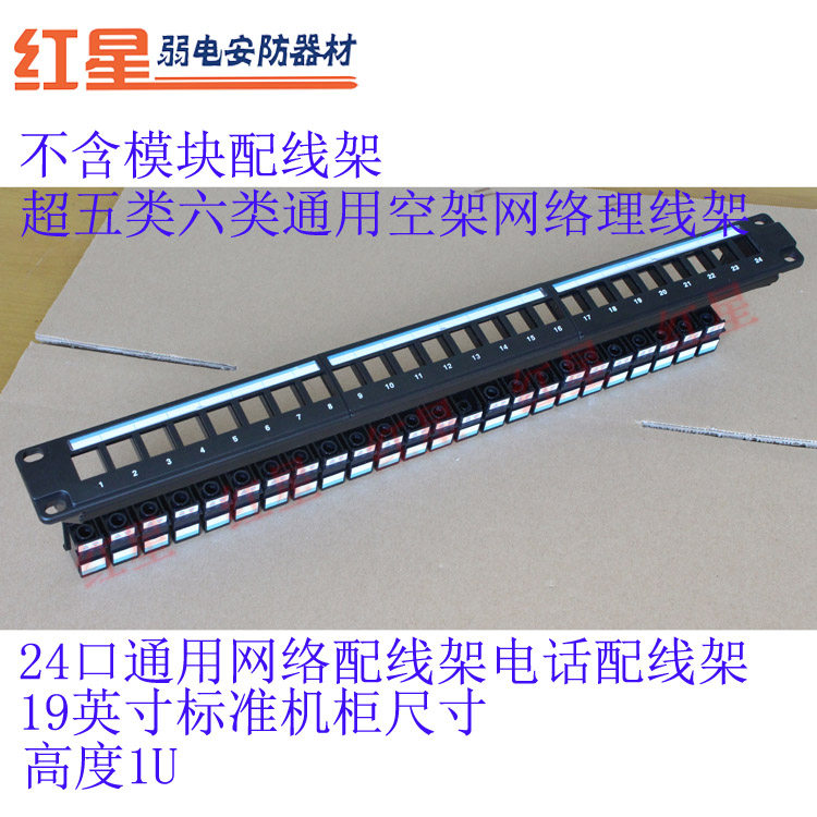 产品规格:超五类 六类 电话模块通用非屏蔽24口直通配线架(空架)