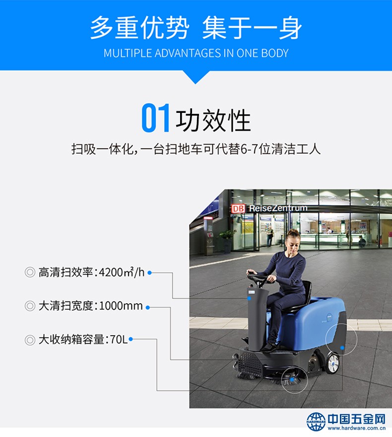 容恩R-QQS扫地车是一款现代新颖、设计紧凑、操作灵活、性能良好的清洁设备,既实现了扫地车清扫垃圾的主要用途,又改变了传统扫地车笨重粗糙的形象,开启小型清扫车精致轻巧、经济耐用的应用趋势,是电动驾驶式扫地车中的精品。其应用范围更加广泛,适合大中型场地各种类别垃圾、各种工作条件的清洁工作。