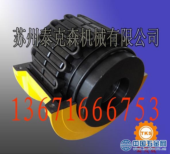 蛇形弹簧联轴器其主要结构是由两个半联轴节,两个半外罩,两个密封圈及蛇形弹簧片组成。它是靠蛇簧嵌入两半联轴节的齿槽内来传递扭矩,联轴器以蛇形弹簧片嵌入两个半联轴节的齿槽内,来实现主动轴与从动轴的链接。运转时,是靠主动端齿面对蛇簧的轴向作用力带动从动端,来传递扭矩,如此在很大程度上避免了共振现象发生,且簧片在传递扭矩时所产生的弹性变量,使机械系统能获得较好的减振效果,其平均减振率达36%以上。