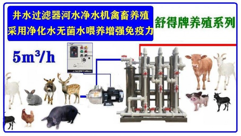 原水处理设备井水过滤器河水净水机养鸡场机械化养鸡场饮水设备,供应原水处理设备养殖业机械饮水设备适用人工养鸡场机械化养鸡场,很多养鸡场采用的是平地养殖、也有养鸡场采用立体养殖,有用河水的、有用地下水的,比如乐山的某大型机械化养鸡场使用的是河水经过处理后供应鸡棚,比如周口**兔业大型机械化养兔场用的是地下水、配置舒得牌净水设备效果非常理想,希望广大养殖户珍惜自己的劳动成果花很少的钱就能解决饮水问题。请联系我们。多年来全国养鸡业配置舒得牌净水器是很多的因为我们的净水器可以轻松净化井水河水江水山涧水,广元市一养殖大亨拥有多个规模化养猪场、都建设在高山顶上用的是山顶水库的绿油油的水,他给每个猪场配置一套舒得牌净水器,这样猪的饮水方面就得到了妥善的解决,因为猪喝的全是无菌水,就排除了猪体内部产生病源,增加猪的自身免疫率生长更快速,全国这样的例子太多了养猪场、养羊场、养鸡场、养兔场养牛场、奶牛场高规格水产养殖等配置舒得净水设备。