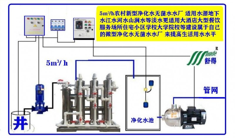 舒得欢迎国内外农村山村微小型水厂升级改造净化水无菌水厂、请考虑使用舒得牌井水河水等淡水Z用不需要添加任何化工助剂的大型净水设备、农村水厂安装一套(大小规格齐全)舒得牌净水设备全村就可以天天喝上用上净化水无菌水、和城区供应的普通市政自来水来对比不知道高了多少个档次是没有可比性的、我是舒得欢迎您选购舒得净水设备!欢迎项目合作!