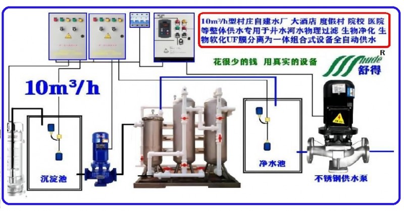 随着社会条件的不断提高、农村50年代兴起的老式水厂将逐渐淡出人们的视线、将被纯生态全生物膜模式组合式设备取而代之。舒得牌生活饮用水处理设备农村水改水厂设备不用添加任何化工净水药剂不用添加絮凝剂沉淀更不用添加氯化物消毒设备自带杀菌消毒是真正的适用于农村新水厂建设老水厂升级改造 设备全程全自动生产线全自动反冲洗全自动正冲洗可远程视频化监控。舒得牌净水设备是主要生产井水河水山涧水深度处理的设备集过滤-净化-软化-消毒-杀菌于一体的组合式设备,用途广泛适用于中国、东南亚、南亚、西亚各国、中东各国、非洲各国等区域只要是淡水都可以配置,自信源于专业。市场的宗旨是提高仅依靠井水河水等普通淡水(含普通自来水)生活的家庭、小吃快餐公共食堂酒店宾馆等餐饮行业及公共服务区域,住宅小区集体供水,农村新型净化水无菌水厂建设老水厂改造,成本低投入少占地面积小使用寿命长等特点。地下水除铁除锰、工业用于食品级蒸汽锅炉、无压锅炉、供暖锅炉等供给无垢软化水、印染企业、浴室禽畜养殖等。