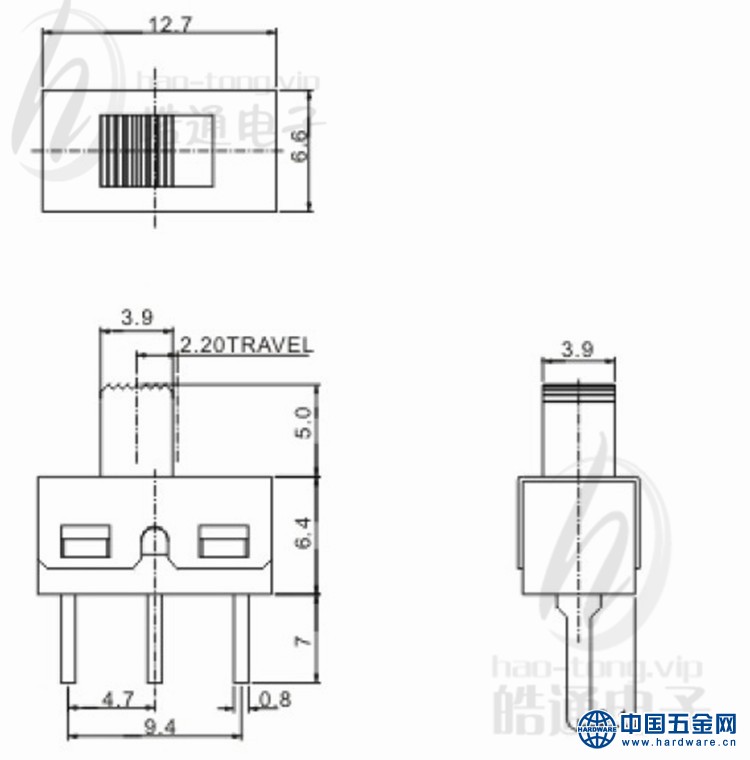 皓通单极三位三档H25-0313PC塑胶拨动开关