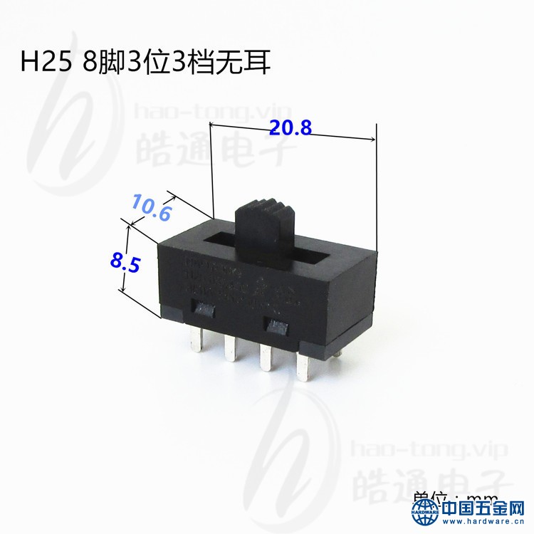 皓通三档8脚无耳塑胶插板拨动开关H250323PC