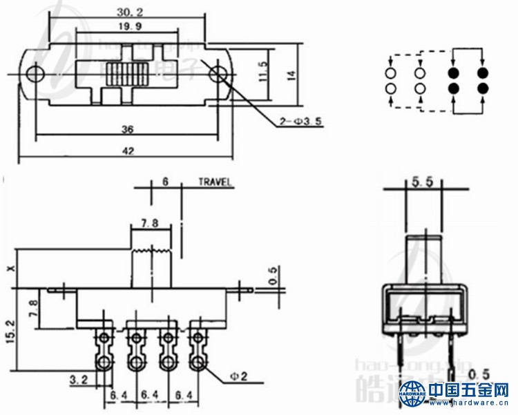 皓通SS22L02大电流焊线6脚蒸脸器开关