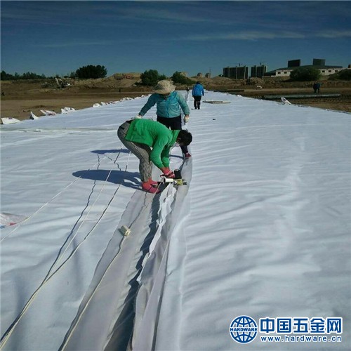 在施工现场,基面一定在按设计要求清理好,这是确保防渗效果的关键,特别是对尖石、树根等杂物要彻底清除干净,基面不允许有局部凹凸现象,清理好的基面要用夯锤或夯板夯紧,使之密实平整。靠两布一膜10cm厚的保护层土料一定要过筛,不允许有粒径大于6mm以上颗粒,否则易刺破两布一膜。