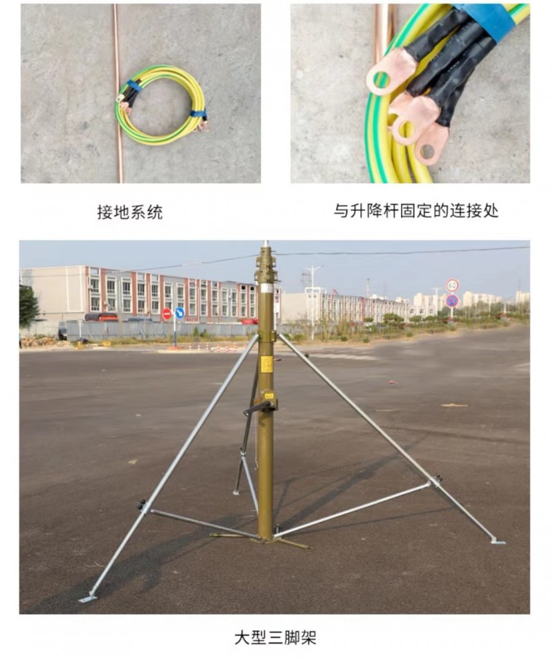 2. 拉线固定:自动便携式升降杆需要安装在一个固定物体上,不可晃动,列如墙壁、车厢体,基桩等。安装固定点至少要有两个,其中一点在通讯升降杆杆体,两点之间的距离要大于升降杆高度的2/3。连接要牢固可靠。