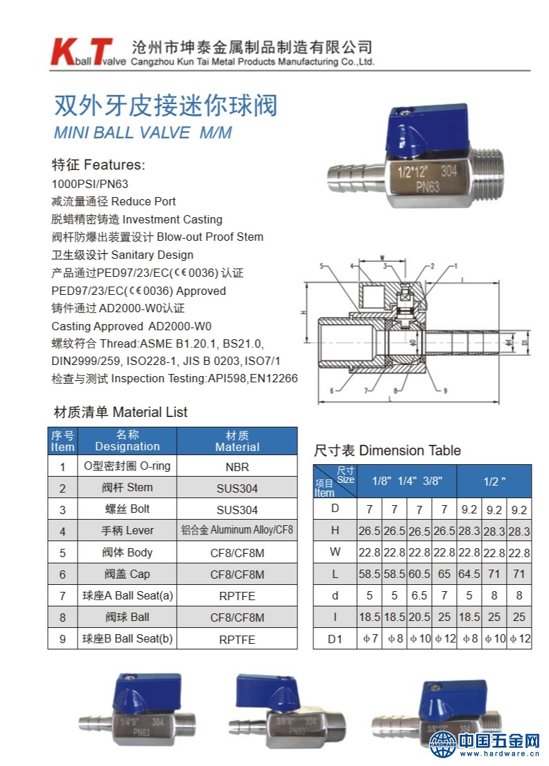英文别称:stainless steel hose mini ball valve - male