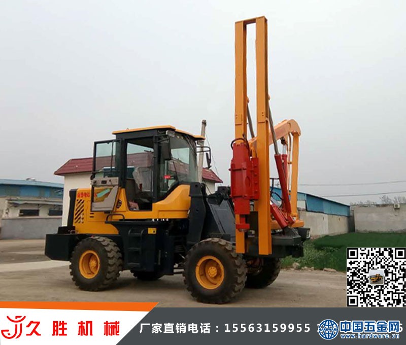 该机为前置式钻孔,比其他厂家后置式钻孔机,操作简单,大的特点是,后置式钻孔机,无论是液压传动还是电机传动钻孔时仅仅依靠螺旋叶片的螺旋自行往下钻,该机,住支撑臂配有2条20T液压油缸,再钻的同时可以将钻杆下压,大大增加速度,就向拿螺丝刀拧木螺丝,如果不给螺丝力依靠螺丝的螺纹型,也可以钻到木头里,如果拿螺丝刀给螺丝推力将大大的增加速度。该机的钻孔速度是其他厂家生产的同类产品无法比拟的,一般钻孔机钻孔速度快要10来分钟甚至20分钟钻一个孔,并且遇到坚硬土质更是难以钻孔。操作方面还至少需要2个人完成,一个人操作机器,一个人完成清土工作。本机采用50或65拖拉机,马力大,动力充沛。钻孔无需清土,一个人即可完成工作,钻到深度后,可靠两条油缸将钻杆提起,土都附着在螺旋叶片上,很少有回落。提起后只需将钻杆正反转动记下土就会自然落下。可以实现单人操作,车到孔成,随钻随走。大大提高工作效率。