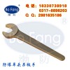 防爆眼镜扳手。其规格有:8*10、10*12、12*14、14*17、16*18、17*19、19*22、22*24、24*27、27*30、30*32、32*34、32*36、34*36、36*38、36*41、38*41、41*46、46*50、50*55、55*60、60*65、65*70、70*75等。防爆双头梅花扳手主要采用铝青铜合金与铍青铜合金材料研制而成,在使用时不会产生火花,是一种安全工具,适用于各种易燃易爆等危险场所。