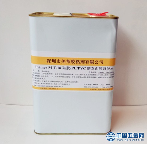 M-T-18是专用于硅胶\PU\PVC背胶的表面处理剂,能有效改善材质的表面极性,大大提高粘接性能,处理后的硅胶\PU\PVC可以用于背双面胶,同时处理后在硅胶\PU\PVC上喷漆、丝网印刷亦有良好效果。具有初粘力强、粘结强度大、使用方便等特点。