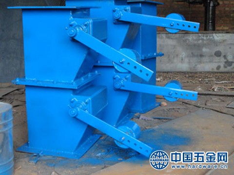 双层重锤翻板卸灰阀接通电源后,上阀电液推杆自动 打开闸板,至限位开关(SQ2)后,停留数秒卸料,然后关闭上阀闸板,至限位开关(SQl)后转入下阀工作,下阀电液推杆打开闸板至限位开关(SQ4)后,停留数秒卸料,然后关闭双层重锤翻板卸灰阀的下阀闸板至限位开关(SQ3)后,转入上阀工作。如此交替工作,至设定的卸灰量后,自动停止全过程工作。