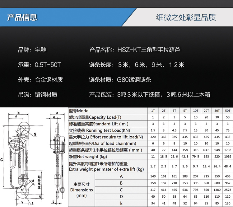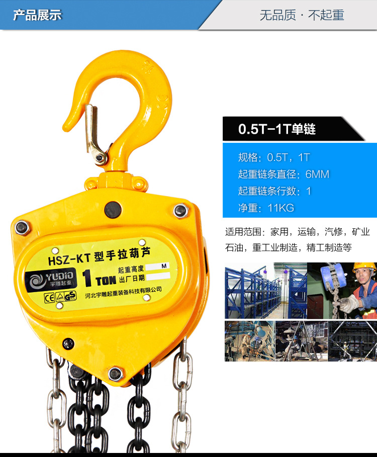 陕西西安手拉葫芦5T3M单链手动葫芦批发代理