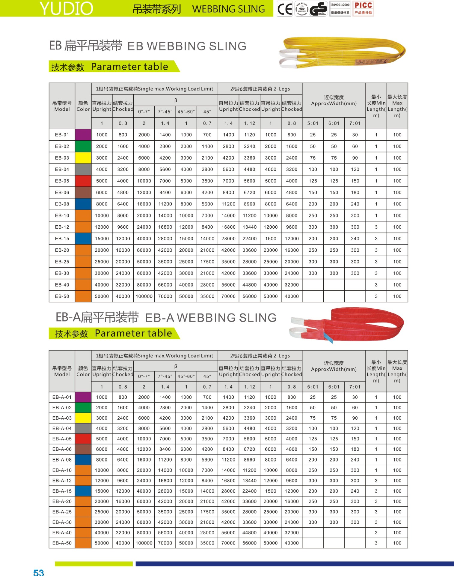 陕西西安扁平吊装带1T1M起重吊装代理批发