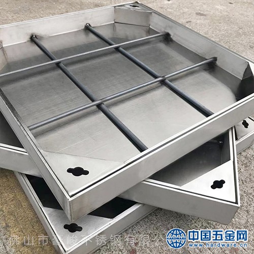 不锈钢铺砖格栅沙井盖为钢板结构,外表直接可铺贴地砖。 订做不锈钢沙井盖定制存在的主要作用就是用来遮盖深井口,比如道路上面一些排污的管口。 传统的铸铁井盖外观比较普通,给人一种非常笨重且普通的感觉。 同时,传统的铸铁井盖在安装完成之后外观不美观。 不锈钢井盖是使用304不锈钢材质制作而成,所以不会因为长期埋于地下又或者是接触雨水而出现腐蚀、生锈。