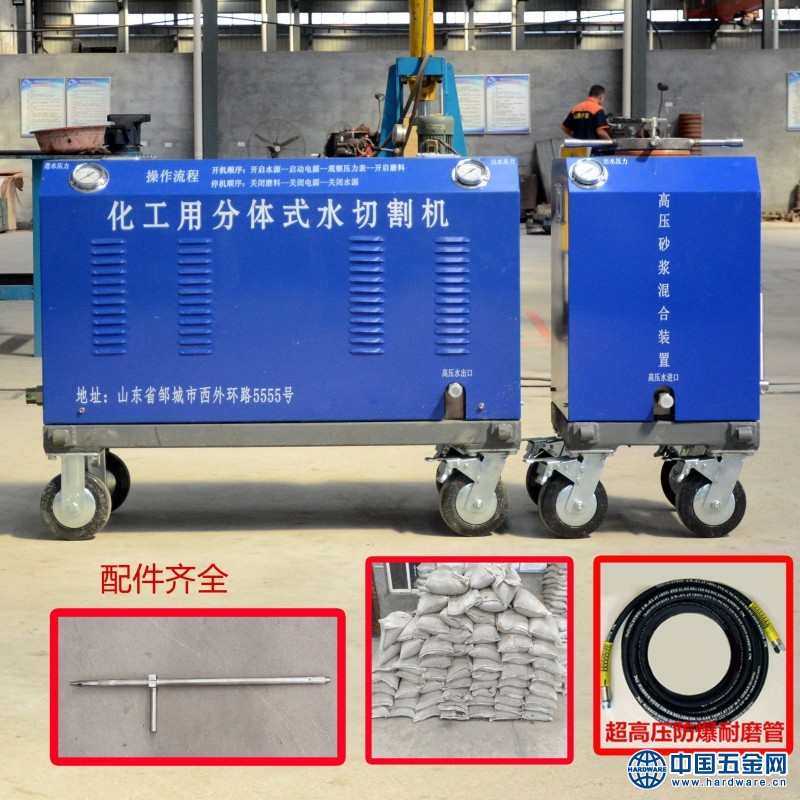 本产品属于冷切割,具有无明火、无高温、无静电优势,特别适用于煤矿、石油、化工、救援、等易燃易爆环境。产品体积小、重量轻,便携,可在高空及狭小空间环境作业。直接利用加磨料水射流的动能对金属进行切削而达到切割目的,其过程中无化学变化,具有对切割材质理化性能无影响、无热变形、切缝窄、精度高、切面光洁、清洁无污染等优点。简易培训即可使用。水切割机配合公司研发的各种工装,如:锚杆切断器、法兰螺丝切断器、圆钢切断器、钢板切割器有效加快切割速度,快速完成切割。