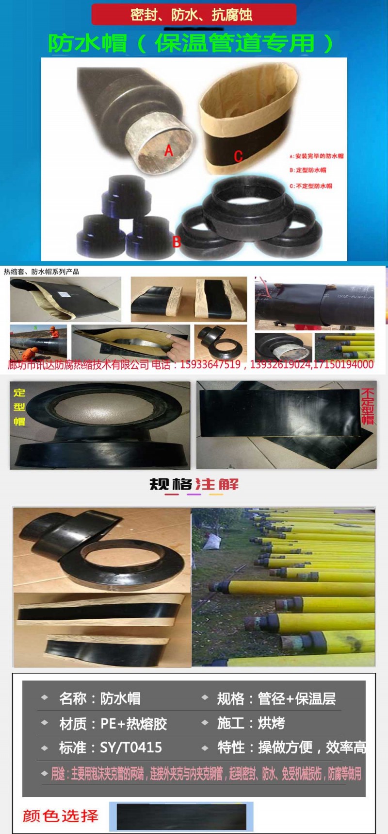 防水帽也称热缩帽,,是在辐照交联聚乙烯基材上复合热熔胶制成的。